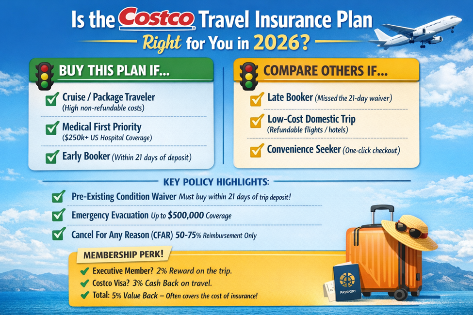 Bottom line: buy Costco Travel Insurance when you are mainly protecting a meaningful prepaid trip investment. Be more skeptical when you are mainly trying to solve for medical risk, low-cost travel, or convenience-driven checkout behavior.